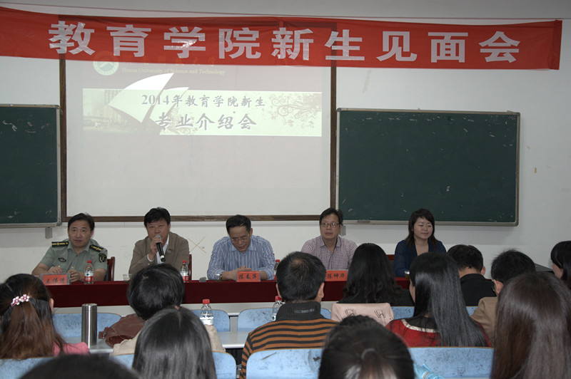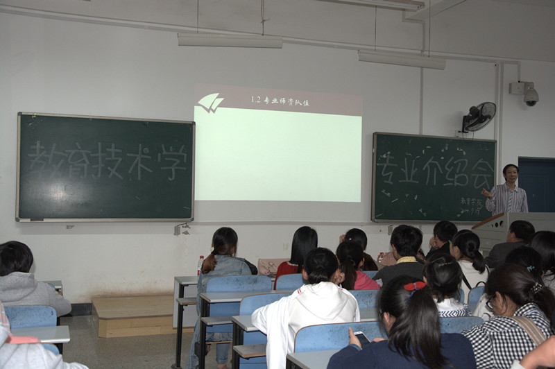 下午17:20,新生见面会之后,各个专业的新生又分别八教3-1、3-3、3-4、3-5四个教室展开了专业介绍会。对于初入大学的新生来说,专业介绍会不仅仅是了解自己所学专业最直接的方式,也是一个与专业老师接触的机会。很多新生认真地提出自己的疑问,老师们也认真耐心地向大家解答。比如应用心理学的系主任刘志军老师就向大家提出了老员工活的“三棵树”,分别为“能力树”、“人格树”和“理想树”,他一次来向新生解释大学应该怎样改变,怎么样更有意义的度过。