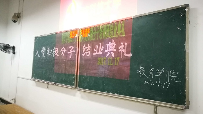 2017年11月17日19:00,球盟会第三十三期入党积极分子培训班结业典礼在八教1-1顺利举行。党建工作委员会副书记唐彬滢同志、党建会各部门成员、各员工支部书记以及球盟会第三十三期入党积极分子全体学员参加了会议。