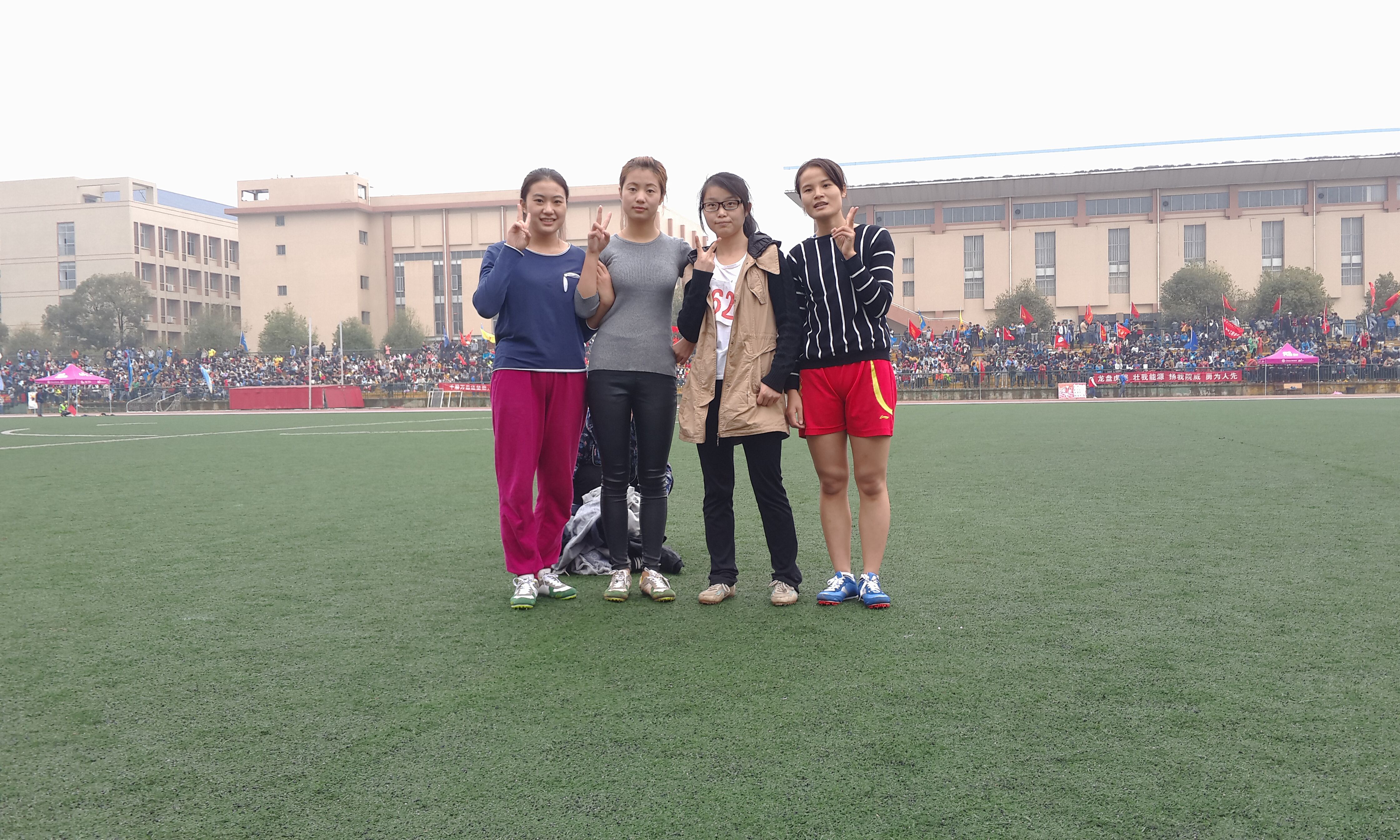 田径赛场上的运动员们,一个个如矫兔般飞离起点,像利箭般冲向终点。运动场上他们的飒爽英姿,跑道上他们的拼搏身影,无不引得在场观众激动不已。三级跳远上的同学,带着教院的期望,怀揣着超越自己的梦想,快速助跑,即时踏板,迈开矫健步伐,腾空落地,以一条美丽的弧线稳落在沙坑上。在我们的采访中,来自球盟会小学教育专业的三级跳远选手林婉琼说“三级跳远是一项很有技术性的比赛,我的成绩不是很理想,但我能超越自己,我觉得很高兴,关键是重在参与”。该选手向我们传递了友谊第一,比赛第二的原则,尽管没取到好成绩,但观众却不会因此而沮丧。“教院不红,天理难容”“大教育,加油”这此起彼伏的加油声无疑给成绩不理想的选手一个安慰,给将要比赛的选手一个安心丸。