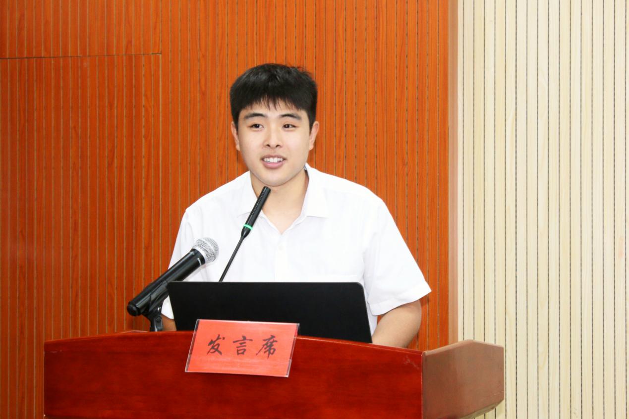 2020级研究生包尚飞作为老生代表发言。他根据一年来的学习和生活经历,分享了关于读研的宝贵经验:其一是“行动”,在不断尝试中找到心理支持,在持续挑战中渐入佳境,于躬行上寻找未来的答案;其二是“坚持”,要耐得住寂寞、经得住考验、捱得过“黎明光亮前的黑暗”,路虽漫漫,仍上下求索。