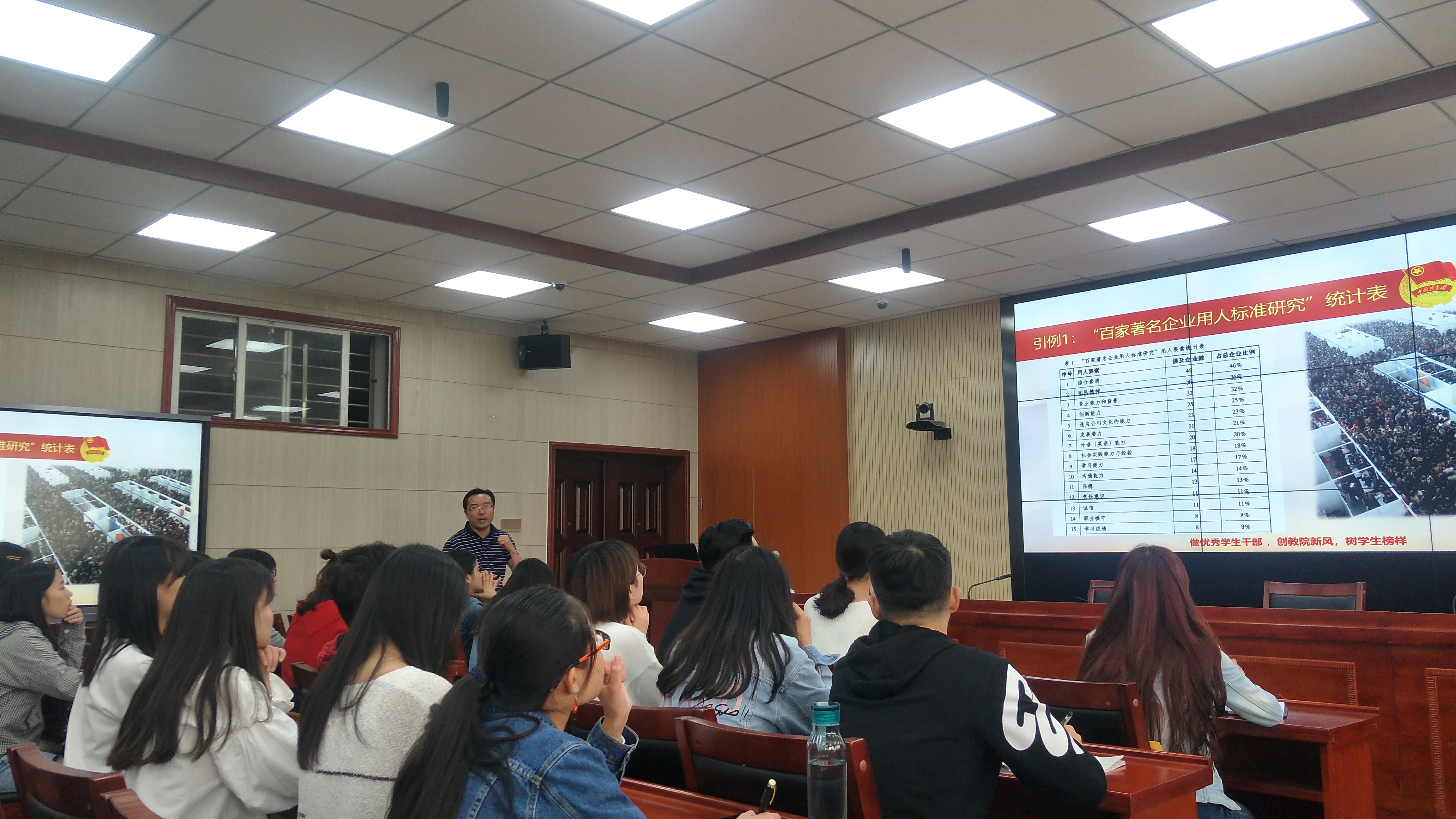 首先,刘辉亚以“百家著名企业用人标准研究表”作为引例,指出员工的综合素质的重要性远远大于学业成绩。接着从员工干部角色定位、员工干部应具备的素质与能力、员工干部的工作流程与方法和当好员工干部的几点要求四大部分进行详细讲解。刘辉亚让在座的员工干部一起思考:我为什么在这里?如何准确定位我的身份?什么才是一个优秀的员工干部?他认为员工就要以学习为主,学习是员工的天职,应摆在首位。首先要求自己做一个优秀的员工,其次才是员工干部,最后做一名优秀的员工干部。员工干部是服务者,是同学们的楷模和榜样。一个优秀的员工干部应具有良好的思想政治素质、高尚的道德素质和健康的身心素质;能够正确处理好学习与工作、个人与集体、奉献与荣誉的关系;能积极参与活动、主动接受任务,创造性开展工作;在工作流程方面,要精心策划、认真组织、狠抓落实、及时总结,关键环节是执行;在工作方法方面,要树立“思路清晰布大局、团结协作出成绩、组织有序提效率、总结到位促创新”的工作理念,来指各项工作的有序、有效开展。
