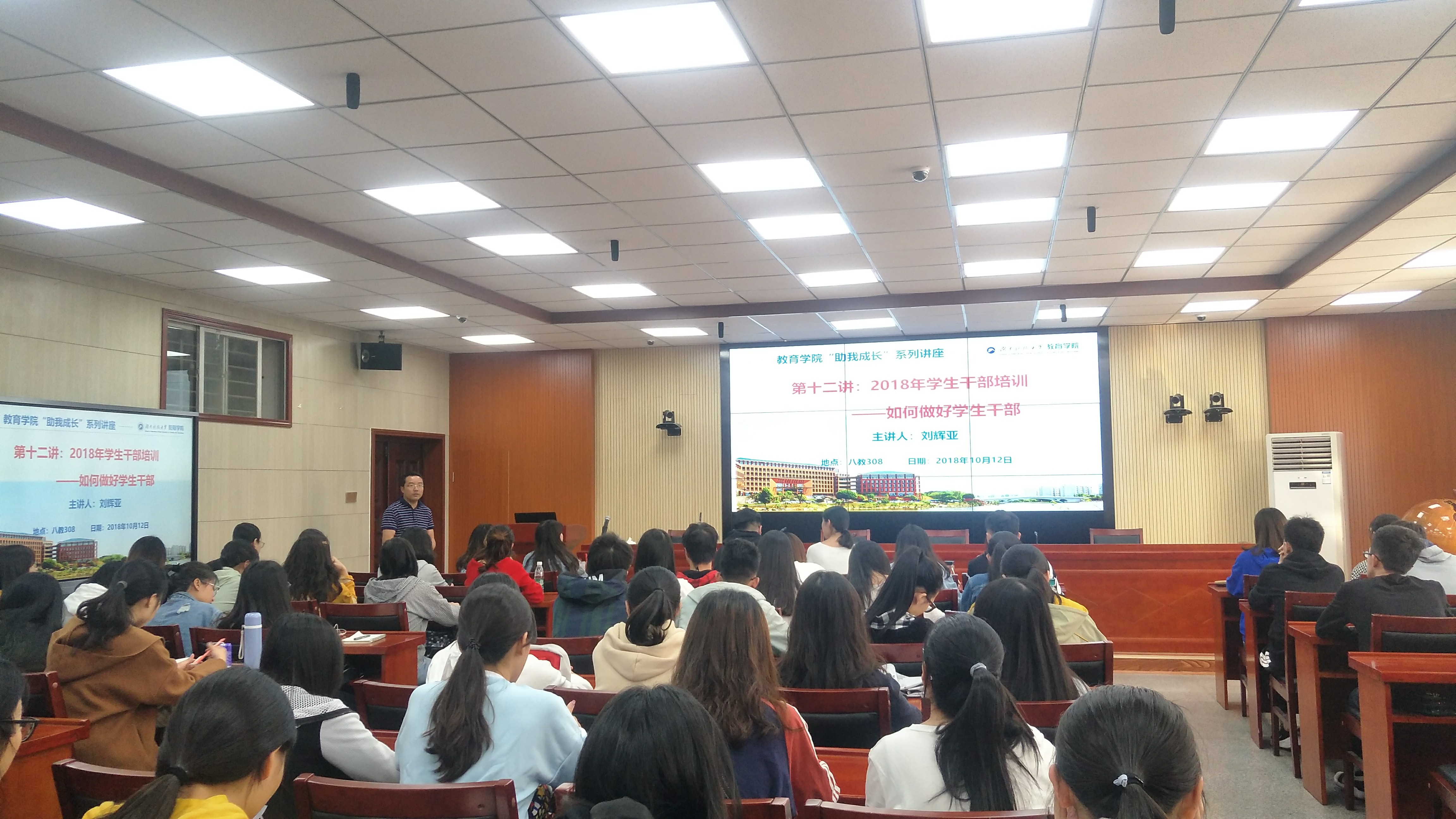 2018年10月12日14:30,球盟会“助我成长”系列讲座第十二讲:如何做好员工干部在第八教学楼308室举行,讲座由公司党委副书记刘辉亚主讲。