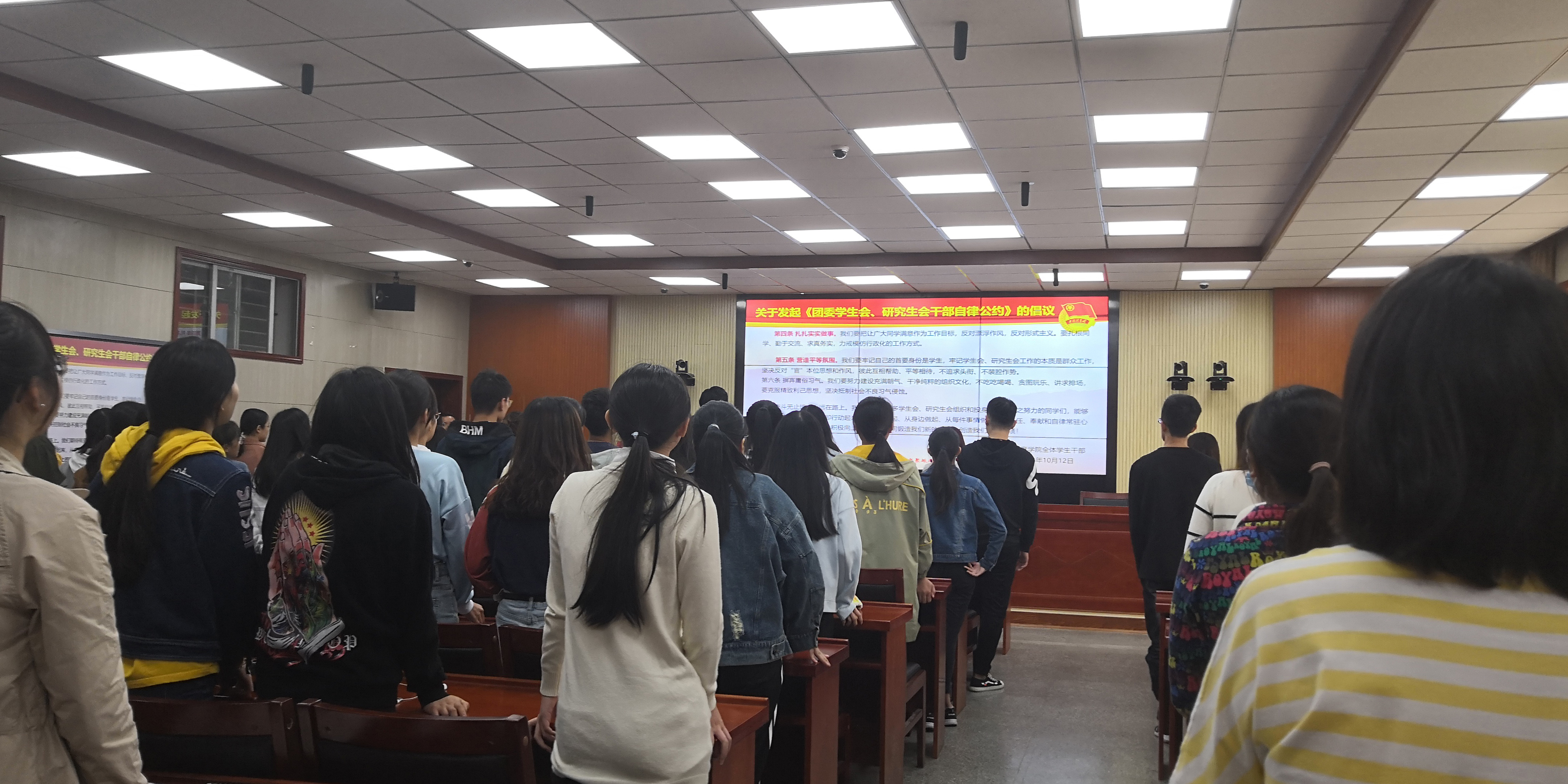 面临新挑战,肩负新使命,做新时代的优秀员工干部。员工干部要做品学兼优的引领者,做规章制度的守护者,做团结协作的组织者,做甘于奉献的倡导者,这是刘辉亚对员工干部的要求。在会议的最后,全体员工干部发起了关于《团委员工会、研究生会干部自律公约》的倡议,决心恪守员工本分,牢记本会宗旨,永葆理想主义情怀,营造平等氛围,摒弃庸俗习气,扎扎实实做事,奉献自我创造新的成绩!