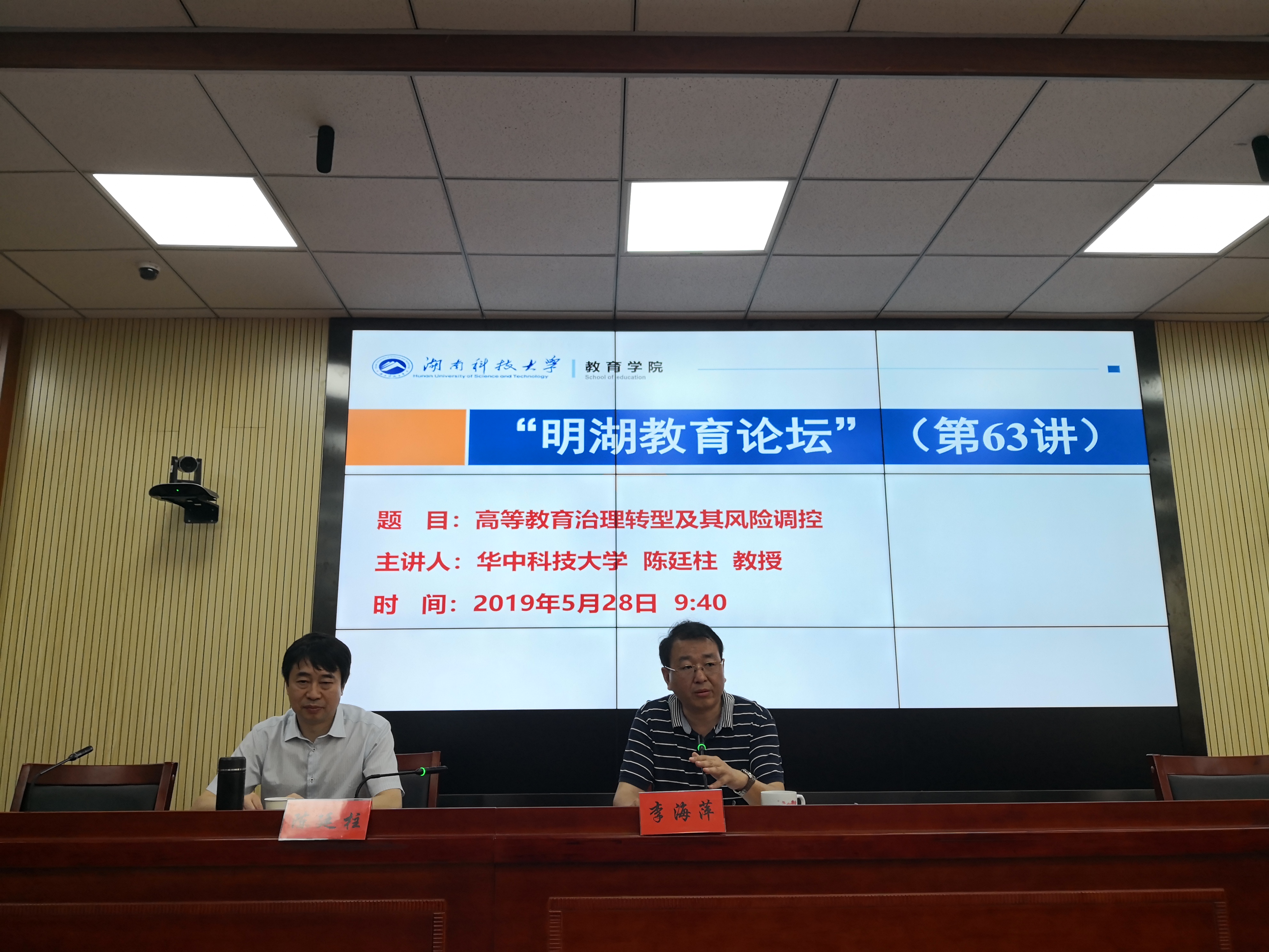 2019年5月28日上午,华中科技大学教育科学研究院经理、博士生导师陈廷柱教授做客“明湖教育论坛”,为公司师生带来题为“项目治教:高等教育治理转型及其风险控制”的学术报告。报告会由球盟会经理李海萍主持。
