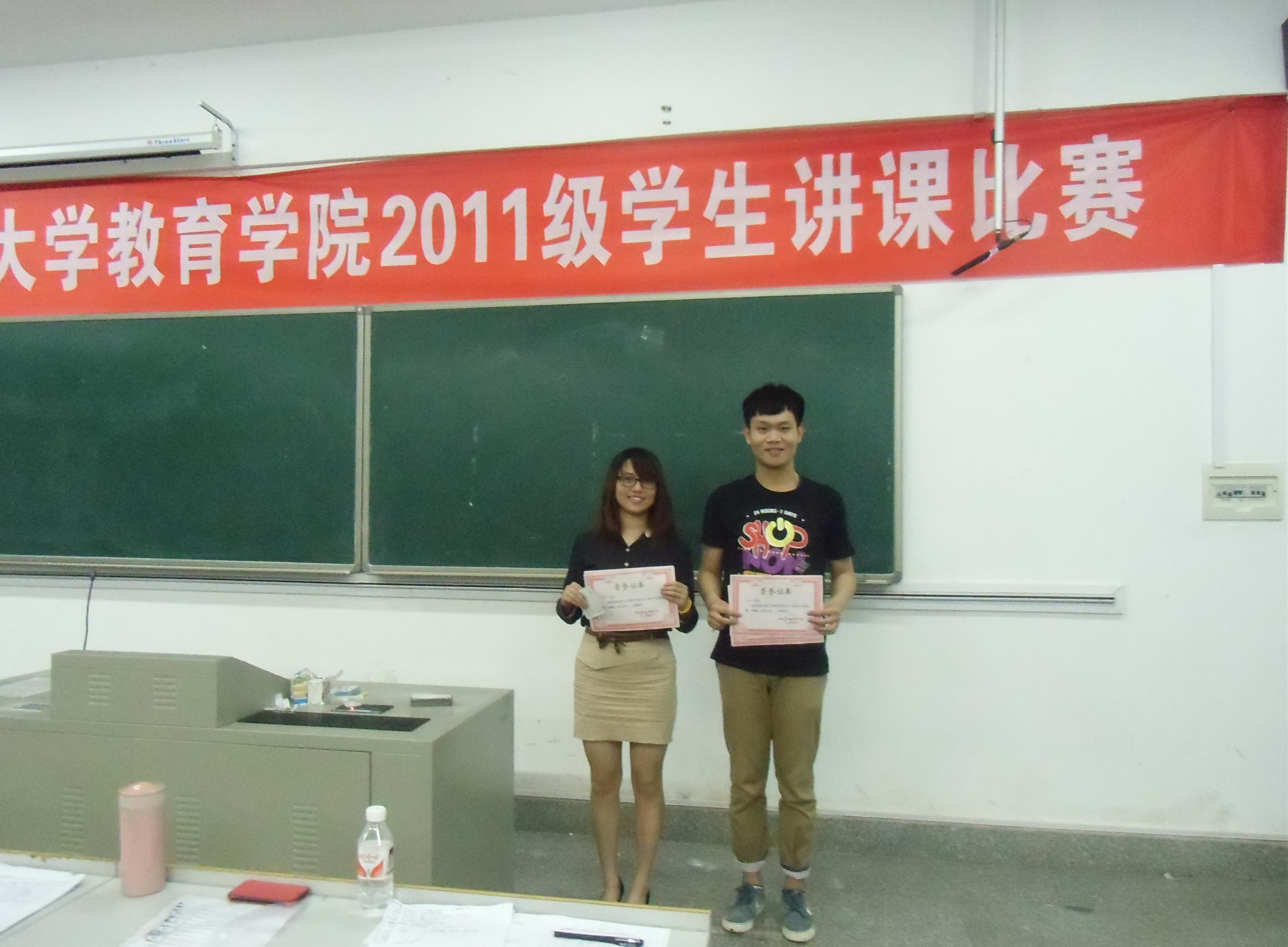 经过激烈的角逐,来自教育学专业唐静和刘烁获得了本次讲课比赛一等奖。范嘉欣、严若楠、蔺然三位同学荣获二等奖,三等奖则由杨欢、康培等五位选手赢得。