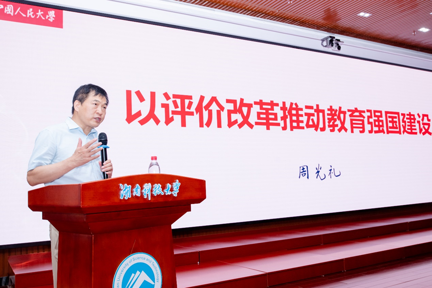 开学典礼结束后,教育部“长江学者”特聘教授、中国人民大学球盟会经理周光礼教授带来了题为“以评价改革推动教育强国建设”的首场学术报告,报告由郭时印主持。
