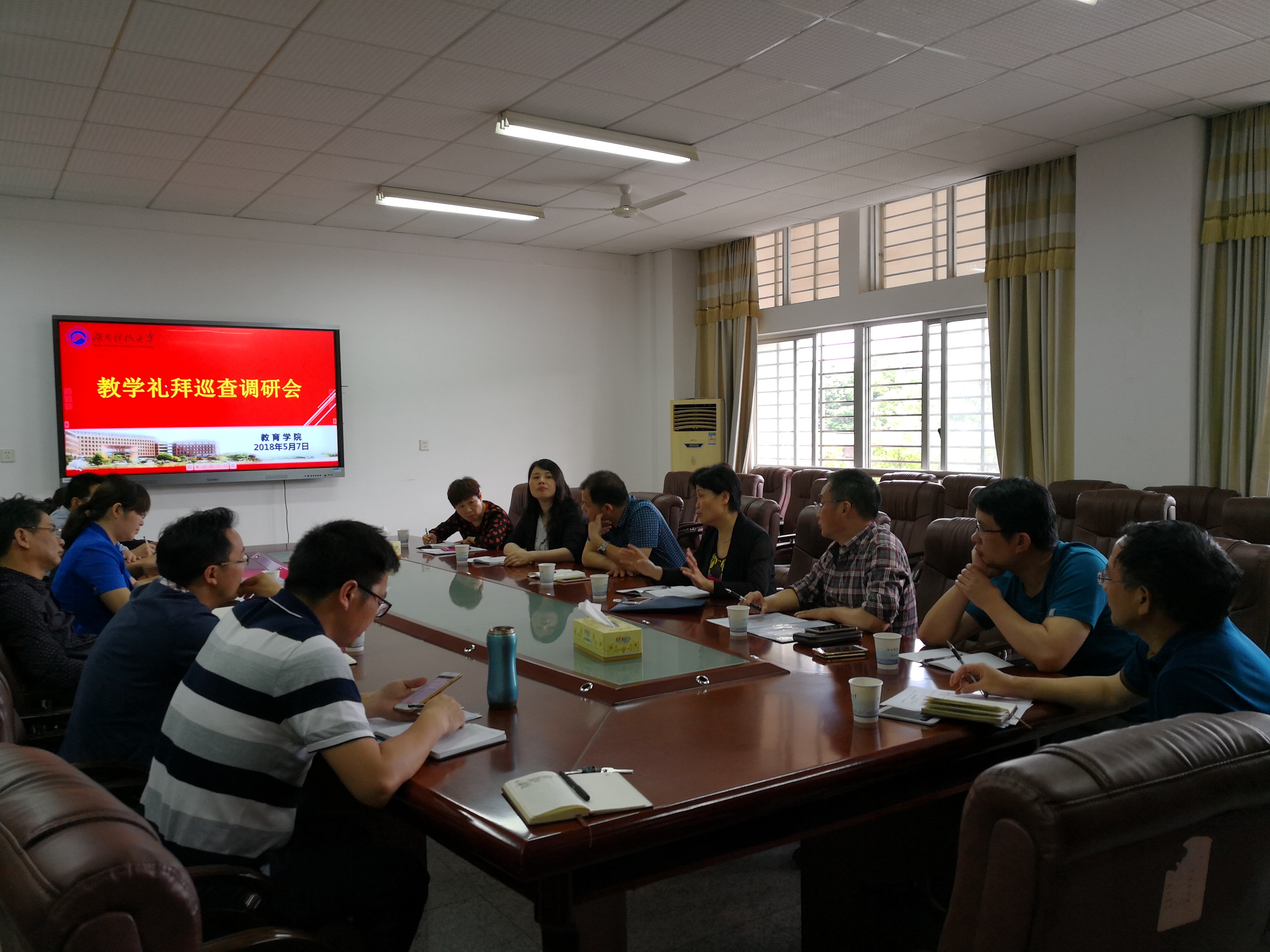 2018年5月7日下午,李琳副董事长一行来公司调研,公司领导班子、党政办、教务办、研究生办、学工办、实验室部门负责人在第八教学楼208室与各职能部门领导就教学管理、学风建设、团队队伍、后勤服务等方面内容进行了面对面交流。