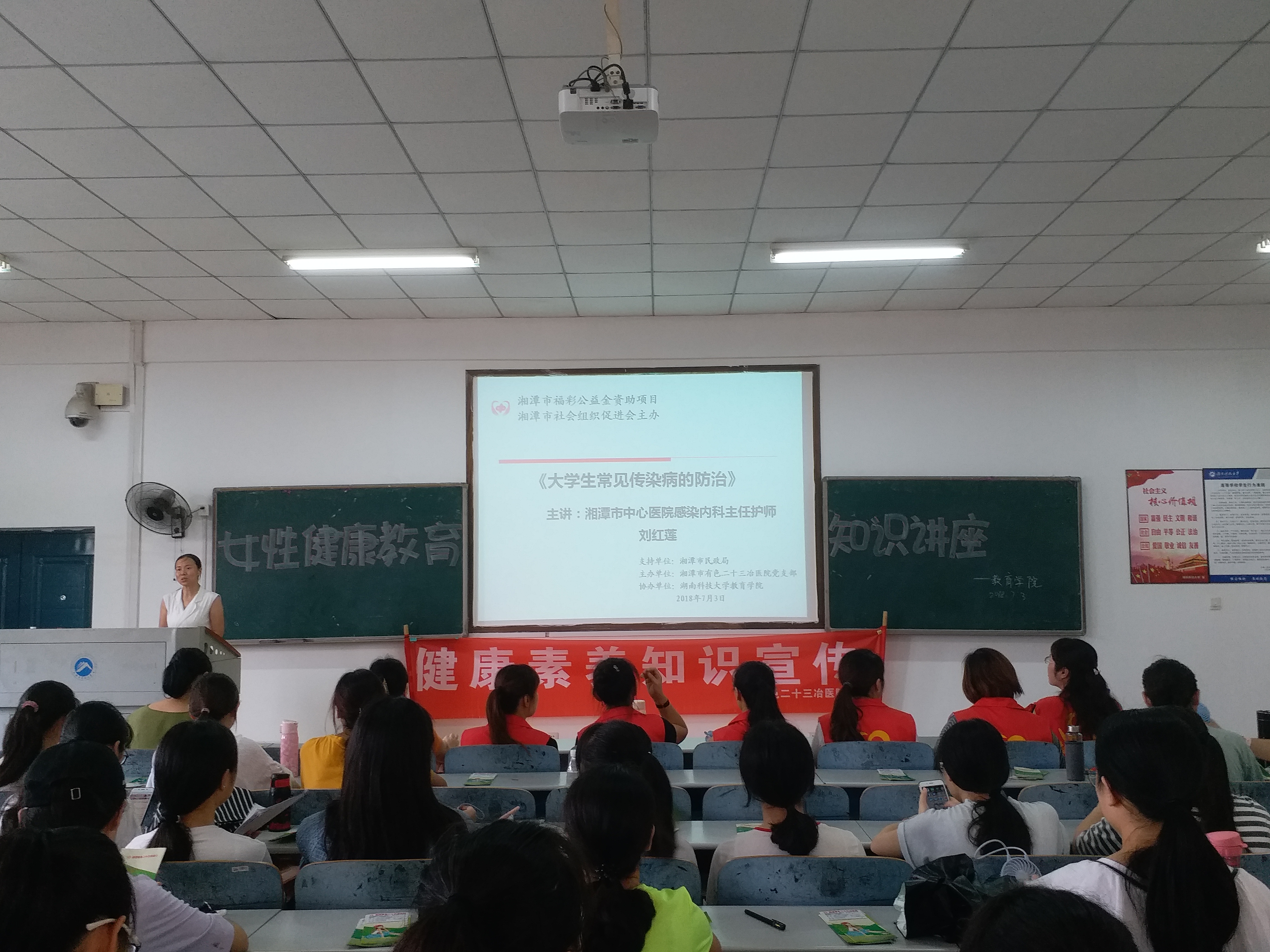 首先由湘潭市中心医院感染内科主任护师刘红莲主讲老员工常见传染病的防治,她从传染病流行爆发事件讲起,详细介绍了什么是传染病,传染病的预防,以及老员工常见传染病,如流行性感冒、麻疹、艾滋病等,对于公司传染病管理也提出了一些行之有效的建议。