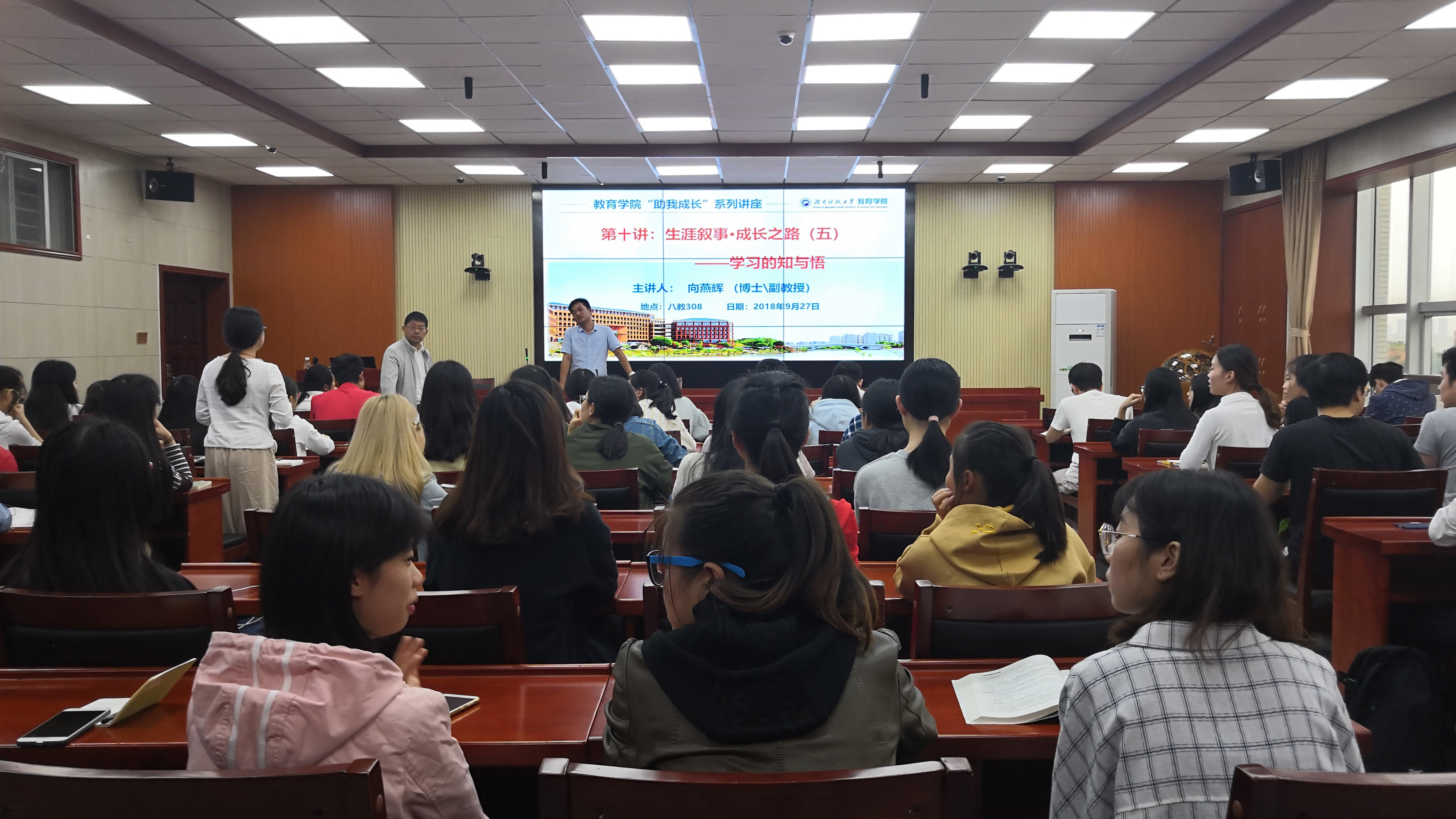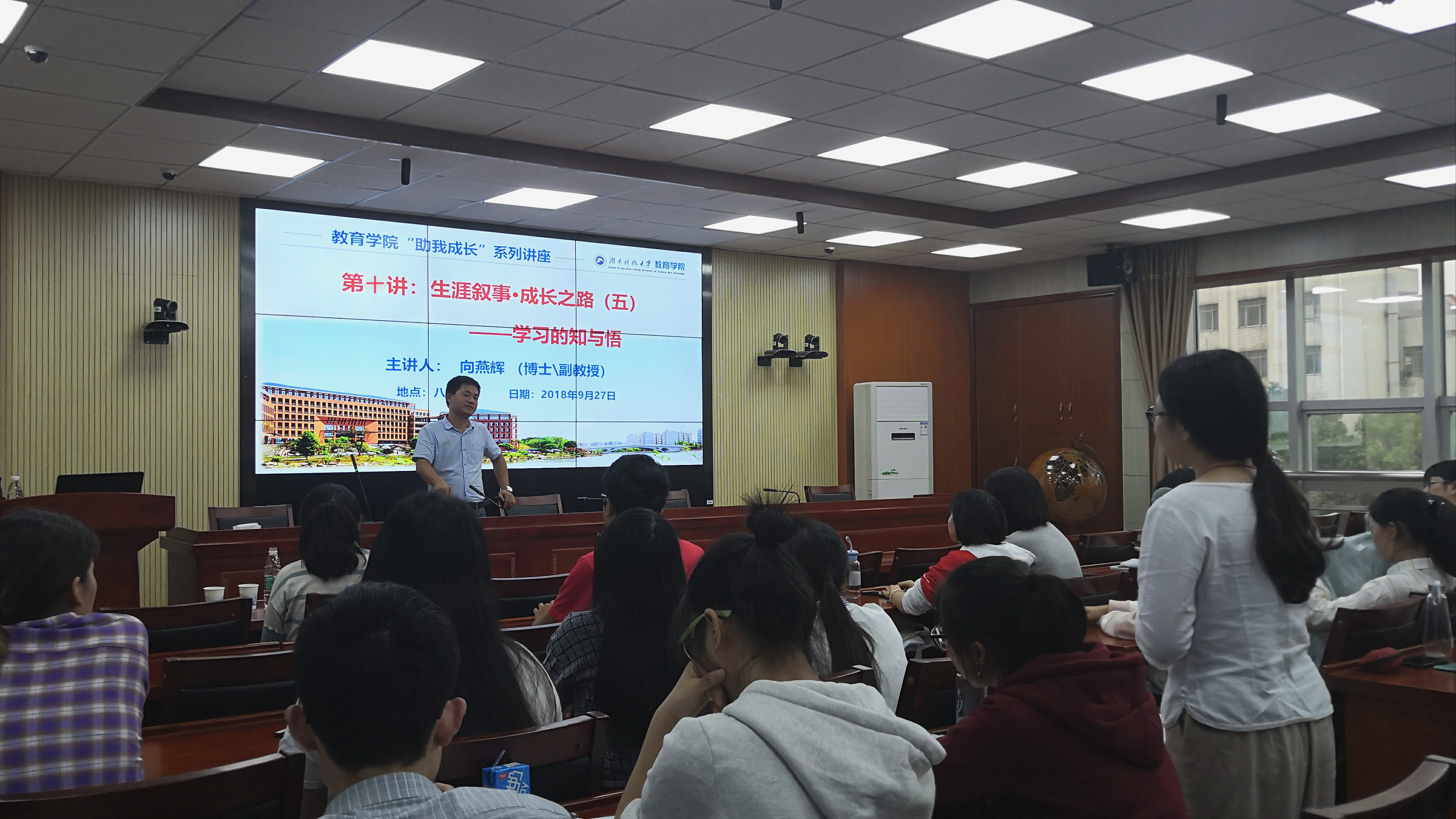 2018年9月27日,球盟会优秀员工2002级应用心理学专业本科生、湖南师范大学心理学系副教授、硕士生导师向燕辉博士莅临公司,在第八教学楼308会议室为公司员工带来“助我成长”系列讲座系列第十讲:生涯叙事﹒成长之路(五)——“学习的知与悟”的讲座。球盟会教师代表、员工代表到场聆听。讲座由球盟会应用心理学系刘志军教授主持。