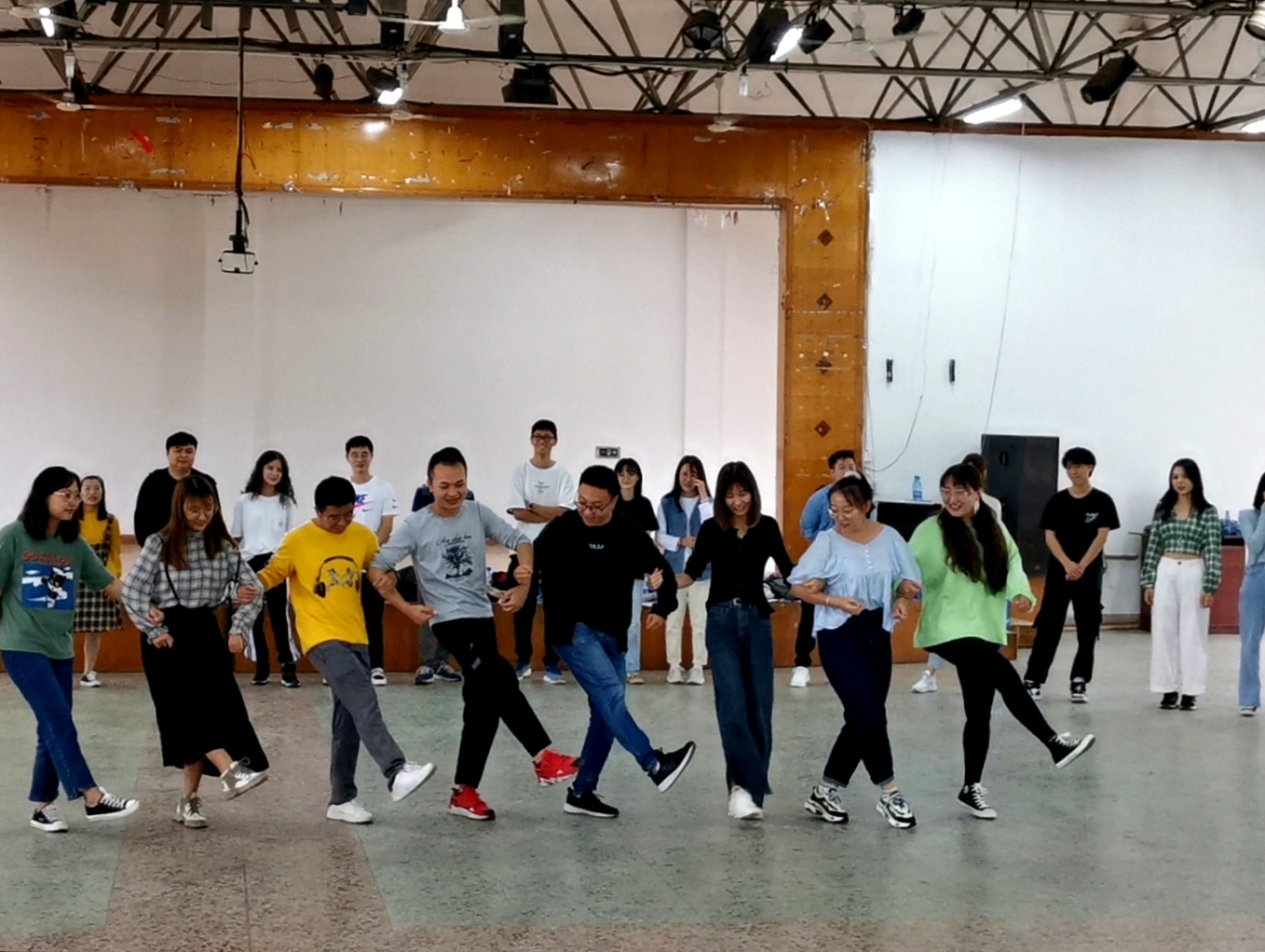 团队破冰——“冰消雪融,友谊在破土”。75位朝气蓬勃的同学围成圆圈,参与到“大风吹”、“击鼓传花”和“五毛一块”的破冰活动中来,每位同学都积极参与游戏,气氛热烈,活动开始前的局促不安已然褪去。