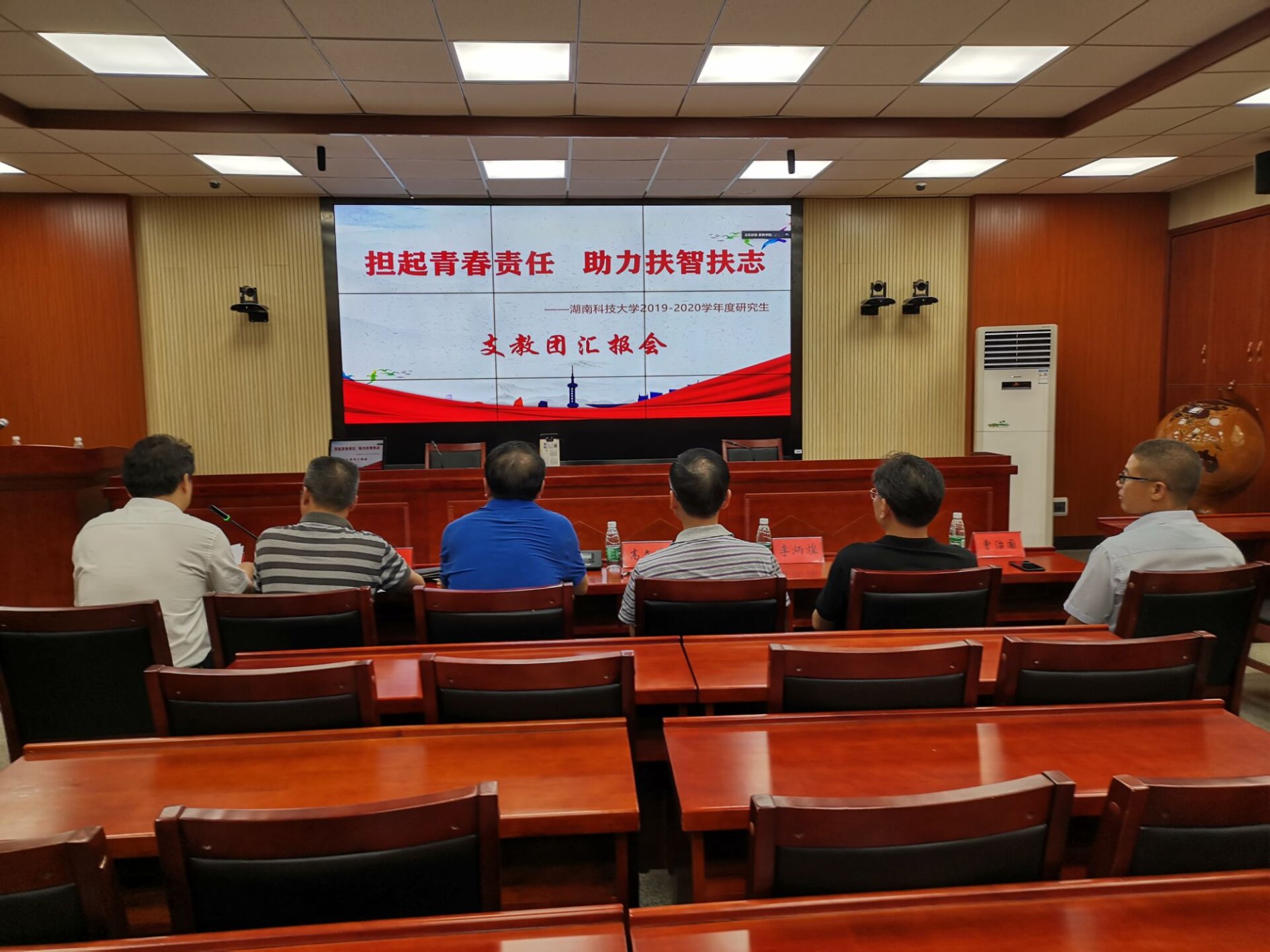 2020年7月8日下午,以“担起青春责任、助力扶智扶志”为主题的球盟会2019-2020学年度研究生支教团在线汇报会在我院308学术报告厅举行。研究生院(部)院(部)长高文华、副经理王欣、副院(部)长曾治国,我院经理李海萍、党委书记李炳煌、副经理谭千保,公司驻龙潭扶贫队队长、研究生支教团指导教师乐斌辉,永顺县首车镇中学董事长张耀华、中心小学董事长向成龙及研究生支教团全体成员与会。