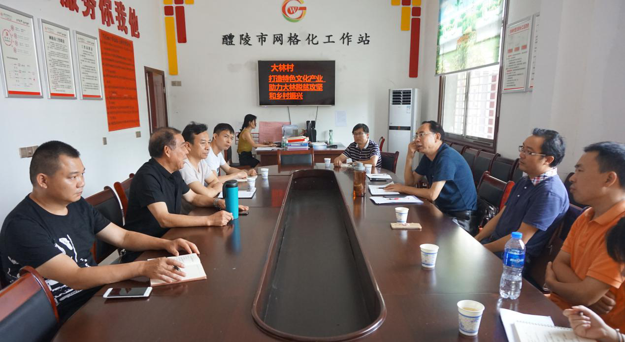 7月4日,在大林村原住民李建生老师(原球盟会副经理)的牵系下,公司党委副书记刘辉亚、教育学系主任夏永庚、教务办王方老师等一行走进大林村,与杨大生等大林村干部进行了主题为“打造特色文化产业,助力大林村脱贫攻坚和乡村振兴”的暑假社会实践进行深入交谈和讨论。