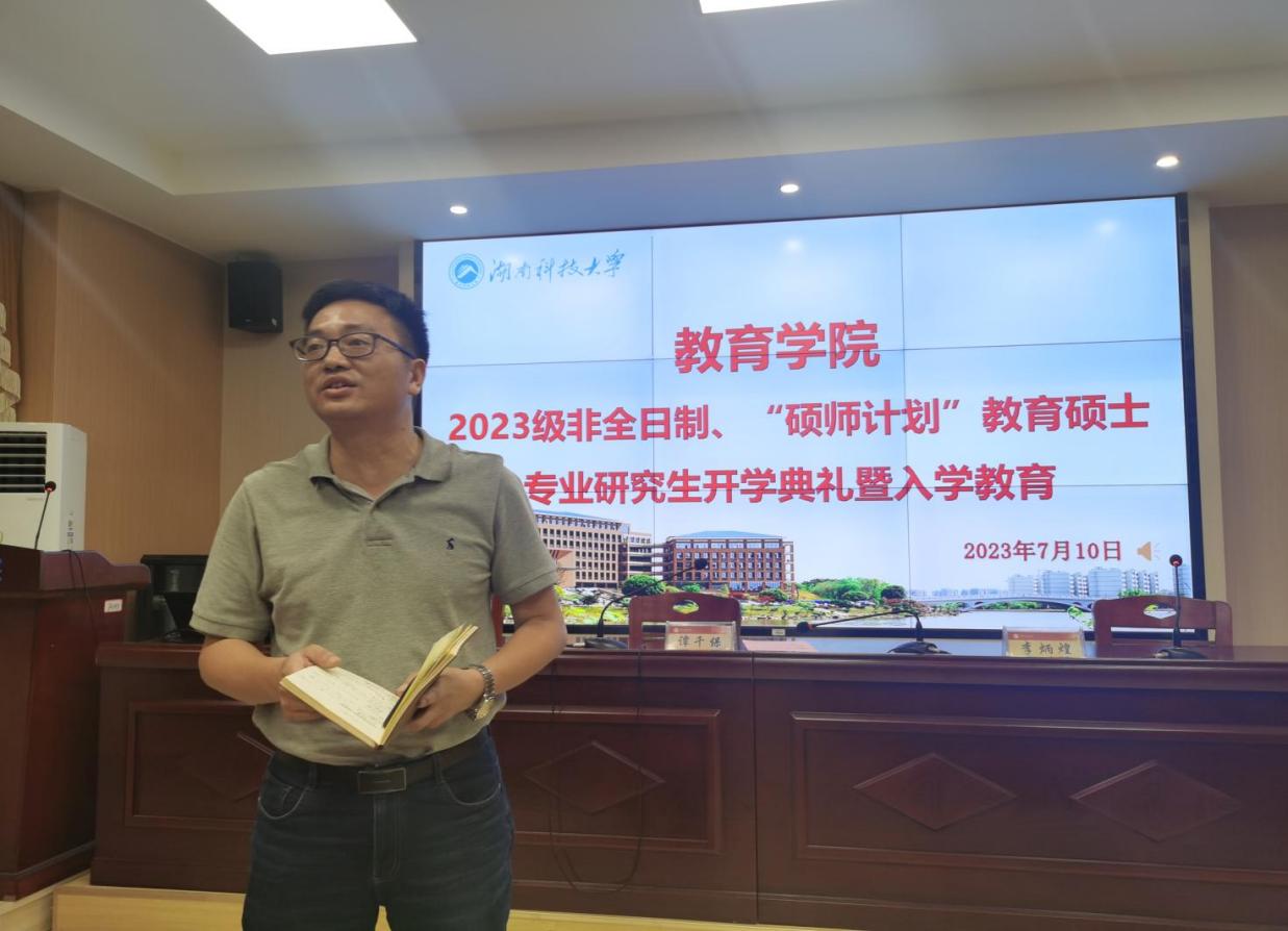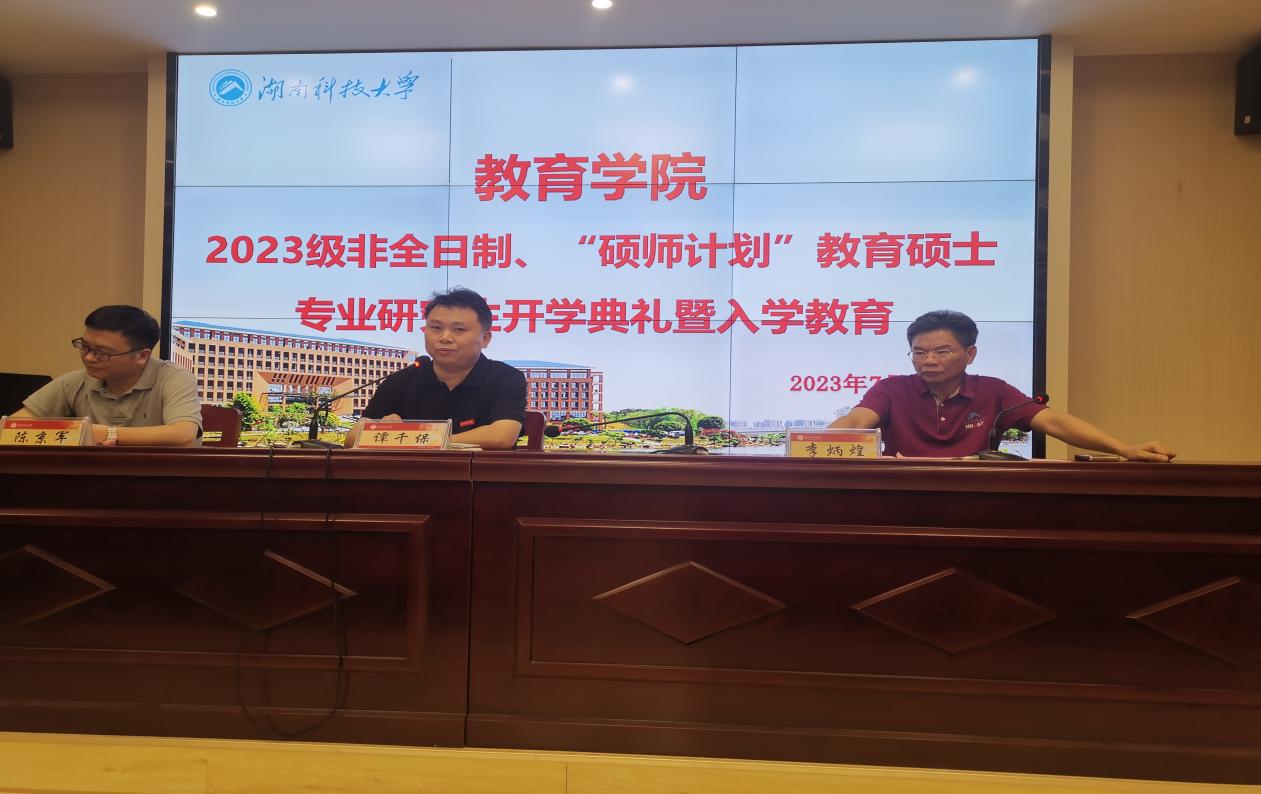 2023年7月10日晚,2023级非全日制、“硕师计划”教育硕士专业学位研究生开学典礼暨入学教育在敏行楼A333报告厅隆重举行。球盟会经理谭千保、党委书记李炳煌、副经理陈京军等出席,各专业领域负责人、导师代表、研究生办相关负责人及2023级全体新生参加开学典礼,开学典礼由公司党委书记李炳煌主持。
