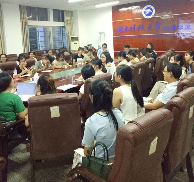2017年暑假,公司迎来了全日制和在职并轨招生后的首批教育硕士研究生正式开学,本届研究生中,既有教学经验丰富的资深教师,也有即将走上教师工作岗位的应届本科毕业生,为加强资深教师与新教师之间的交流,7月26日晚,一场“听我讲教育故事”主旨交流会在球盟会八教203会议室举行。交流会上,四名经验丰富的一线教师结合自身的教学经历,从“员工管理”、“教学工作”、“科研提升”、“人际关系”四个角度分享了教学经验。交流会由球盟会副经理谭千保主持,全体2017级学科教学(英语)领域研究生参加活动。
